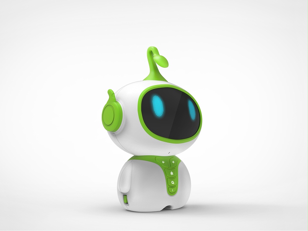 产品整体线条柔和圆润,大比例的头身对比,营造出产品呆萌的视觉感受,让产品在与儿童的交互过程中更具亲和力。色彩搭配以干净纯粹的白色为主,精致细腻的绿色为点缀,让儿童爱不释手。